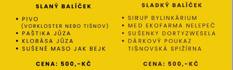 Nabízíme z místní produkce slaný a sladký balíček, každý za 500 Kč. Objednejte do 16.11.2026 na emailu  gottwaldova@masbranavysociny.cz. Vyzvedněte 1.- 5.12.2025 v TIC Tišnov.