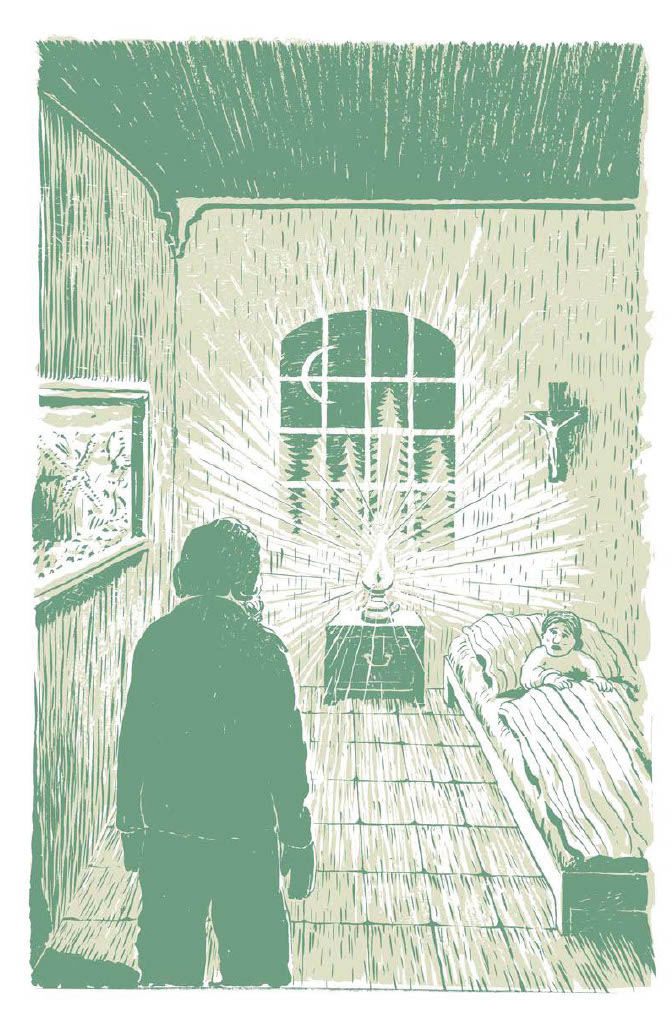 Žena mu vypravila slušný pohřeb, rozloučila se se všemi, kdo přišli, a večer ulehla. Okolo jedenácté slyšela volání; poznala hlas mrtvého muže, otevřela oči a spatřila ho přímo u své postele.