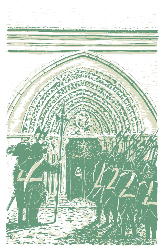 Abatyše spěchala do míst, kterým se říkalo niva. Jen kousek odtud tekla řeka Svratka, vylévající se při jarních povodních do okolní krajiny. Když za sebou uviděla Švédy, seběhla z cesty přímo do pole, na kterém zlátla pšenice. Snad se jí podaří schovat se tam. Vojáci už byli téměř u ní. I když hlasitě dýchala a bušilo jí srdce, zřetelně slyšela jejich dupot i hlasy.