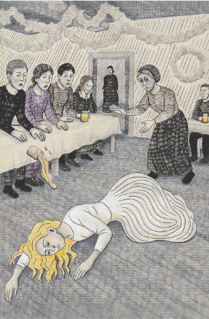 Do místnosti vstoupila její matka a při pohledu na tu sněhobílou záři uprostřed místnosti náhle vůbec nevěděla, kdo ona žena je a co se to před ní odehrává. Dcera se zasmála. „Podívejte se, maminko, jak jsem krásná!“ zavolala veselým, ale lehce zastřeným hlasem. V tu chvíli padla mrtvá k zemi.