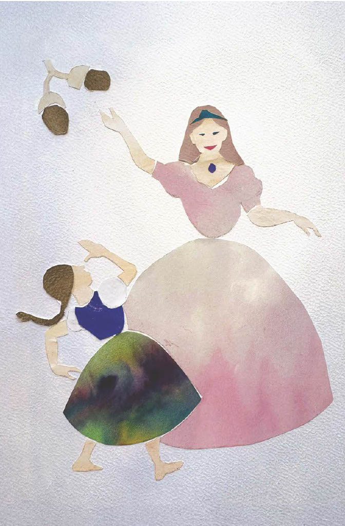 Helenka nebola unavená ani náhodou. Poberala sa čoraz hlbšie do lesa za spevom vtákov. Napokon však spev ustal a razom začula ľudské hlasy. Jemný ženský hlas odpovedal na volanie hlbokého mužského hlasu. Helenka išla za zvukmi a všimla si postavy na čistinke medzi stromami. Opatrne sa priblížila. Náhle však ucítila ostrú bolesť a nevedomky vykríkla. Poštiplo ju niečo do ramena.