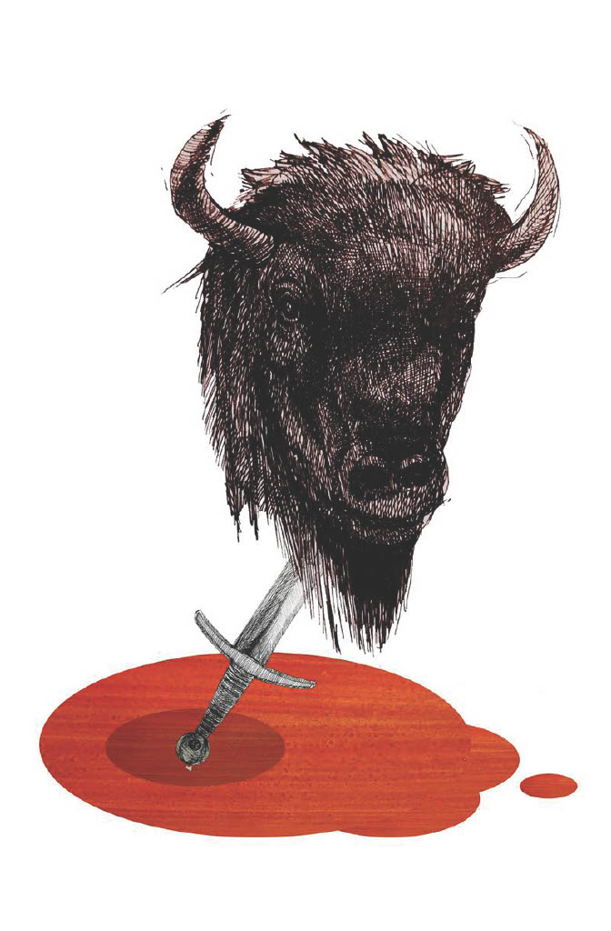 „Cha!“ Z plných sil zatlačil zubrovu hlavu k zemi a proutek mu provlékl čumákem. Jak zvířeti prorazil nozdry, uslyšel hrozivý řev. Věnava na něj nedbal, proutek zavázal do kruhu a teď už si se zvířetem mohl dělat, co chtěl. Hrozivý zubr byl pokorný jako beránek.