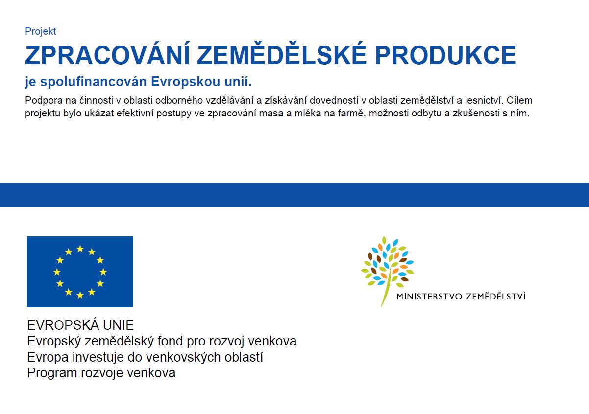 Zpracování zemědělských produktů – vlastní produkce - Maso, mléko (prezentace) Zpracování zemědělských produktů – možnosti odbytu masa (brožura)